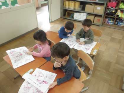 安全ノートの絵を見ながら危ないところの話し合い。