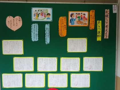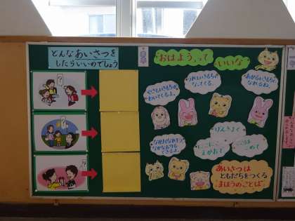 こころの広場の掲示板が新しくなりました。 今月は,4月に学習したあいさつの内容が掲示してあります。