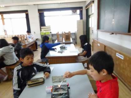 ものの燃え方の学習の様子です。
