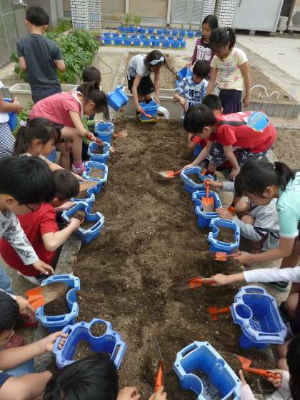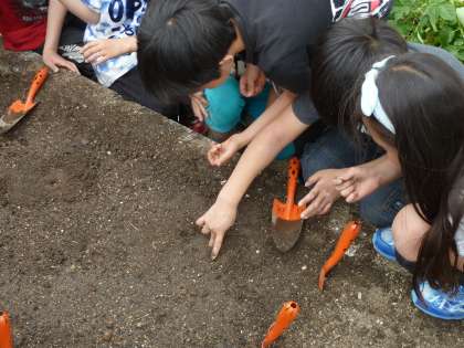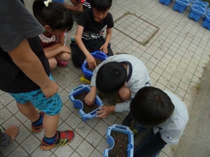 理科の学習で,ヒマワリとホウセンカの種をまきました。
