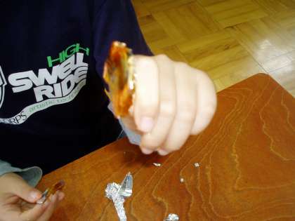 今日の5時間目,育成学級では,「べっこう飴づくり」に挑戦しました。甘みの中に苦さがあり,「甘苦いよ。」と,味を表現することも出来ていました。