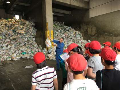 横大路学園では,プラスチック容器包装の分別の仕事について見学し,職員の方の話を聞きました。