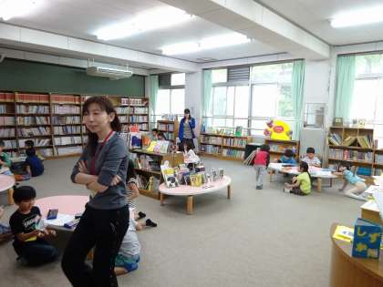 図書館のオリエンテーションがありました。 これから,たくさんの本にふれてほしいと思います。