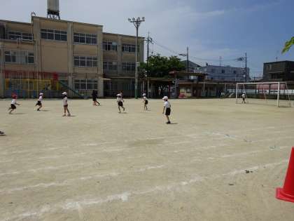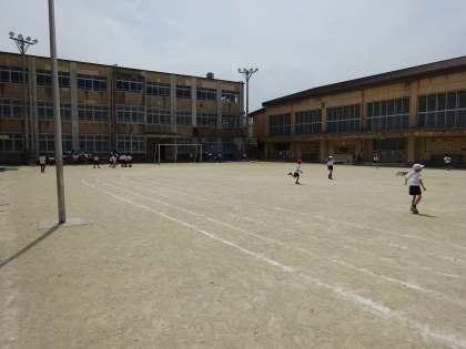 中間休みの様子です。 グラウンドでは,体操服の子ども達が遊んでいます。