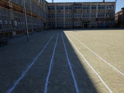今日も,とてもいい天気です。 グラウンドでは,教員が徒競走用のラインを引き直していました。