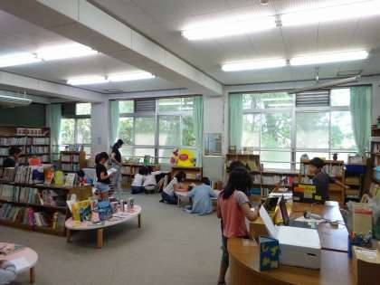 4時間目の様子です。 図書室では,4年生と6年生が読書をしていました。