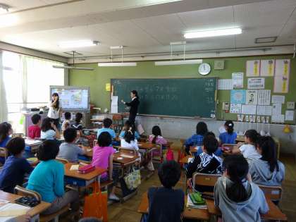 外国語活動の様子です。 今日は,ALTの先生が来られて楽しく授業を受けました。