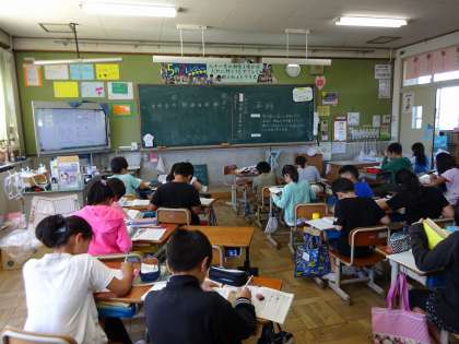 国語の学習の様子です。 漢字辞典を使い,漢字の成り立ちを調べています。