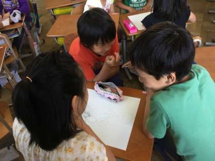 「もっと話したい」「他のグループのものも見てみたい」と意欲的に話し合いに取り組んでいました。