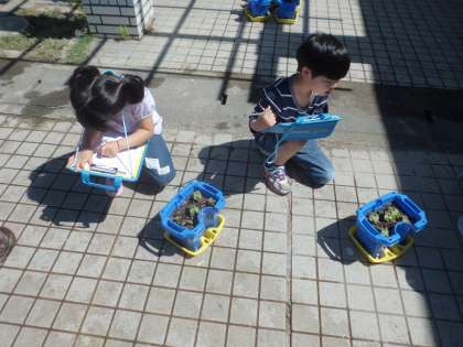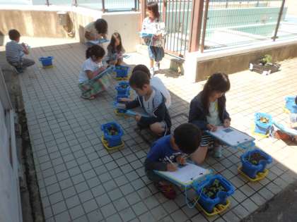 新しい探検バックをもって,じっくり見たり,においをクンクン,そおーっとさわってつるつるふわふわ♪