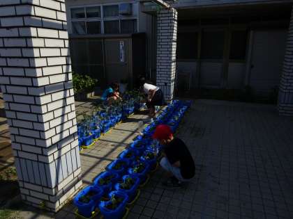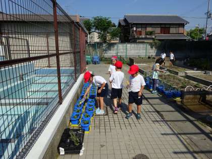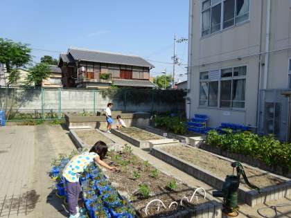 それぞれの学年で,学年園の水やりをしています。