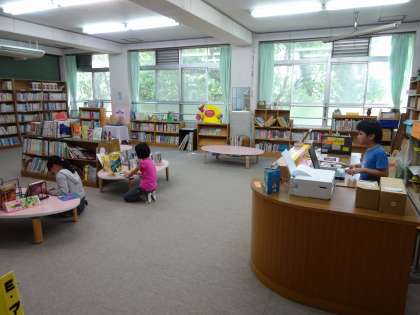図書室では,委員会の子どもが貸し出し作業をしていまいた。