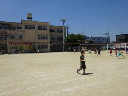 暑さに負けず,グラウンドで元気に遊んでいます。