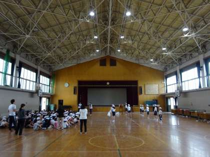 体育館では.白組が応援練習をしていました。