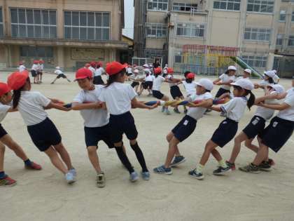 棒引きにはお楽しみがいっぱい 公開日 2017/05/26 更新日 2017/05/26 学校の様子 3年生は団体競技で「棒引き」をします。 練習を見ていると,対戦相手が変わったり,どの棒を取りに行ってもよかったり・・・といろいろとルールに趣向が凝らしてあり,子どもたちは勝つために知恵を集めていました。 しかも,競技が終わってからもなにやらダンスを披露するという・・・お楽しみがたくさんありそうです。 ※写真は昨日の様子です