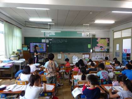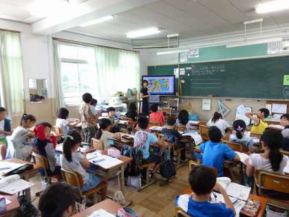 算数の学習の様子です。 デジタル教科書を拡大提示して活用しています。 今日は,コンパスの使い方を考えました。