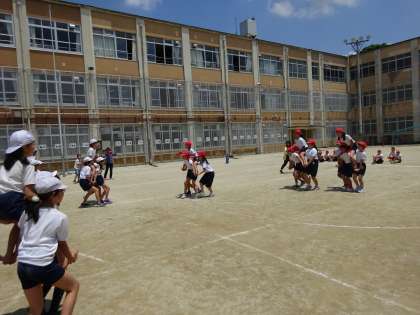 騎馬戦の練習の様子です。
