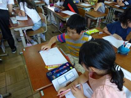 思考ツールを活用し,自分の考えを友達に伝えています。