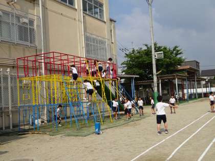 総合遊具やボールを使い,元気に遊んでいます。