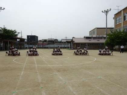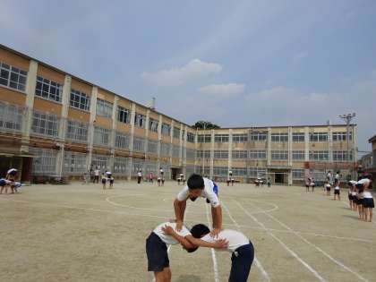 組体操の練習の様子です。 お互いに声をかけ合い,支え合い,助け合い,頑張っています。