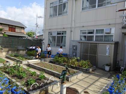 子ども達が,学年園の様子を見に来ていました。