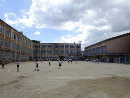 遊具がぬれていたため,グラウンドで元気よく遊んでいます。