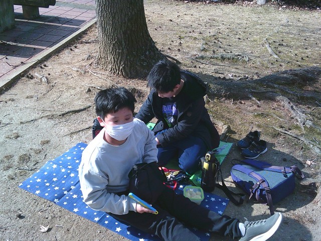 お昼は横大路の公園で食べましたが、天気も良く、気温も高めで寒くなく、ぽかぽか陽気でよかったです。