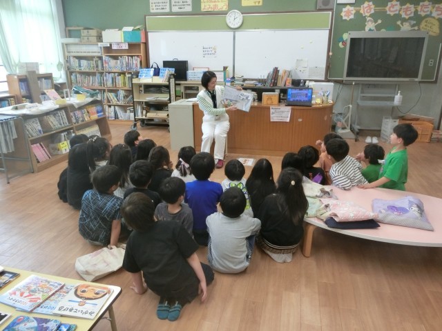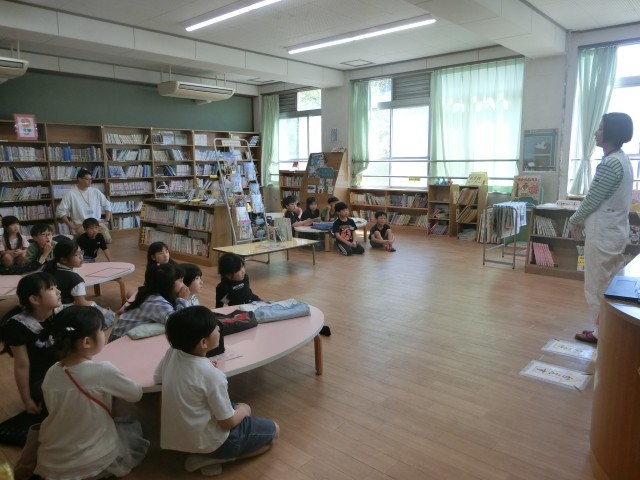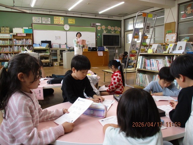 クイズ形式で本の扱い方や図書室の使い方を再確認し、利用をスタートしました。さっそく読みたい本を見つけて、読んだり借りたりしています。