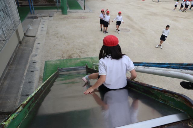 やっと滑ることができるようになった滑り台。