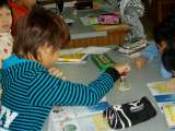 京都市美術館で開かれる「小さな巨匠展」に向けて,近隣の育成学級児童が明親小学校...