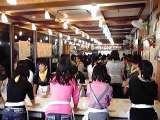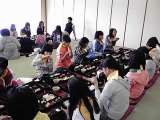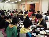 予定よりも少し遅れての昼食風景です。姫路では,雨が上がってきているようです。
