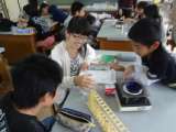 水溶液の性質の学習の様子です。 ムラサキキャベツの水溶液を使って,酸性か中性かア...