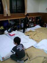 寝具準備の様子です。昼のオリエンテーションで教えていただいた通りに、自分でシーツ...