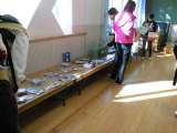 『バザー』 第1音楽室前は,順番待ちをする人でいっぱい。 たくさんの商品の...