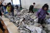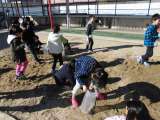 宝探しコーナー たくさんの柔らかい新聞紙の中に,宝が隠されています。楽しそうに...