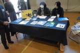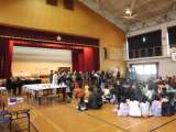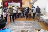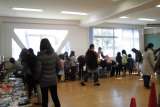 バサーのコーナー たくさんの品物が並べられ,みんなわくわくしています。受付番号...