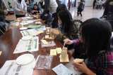 割り箸パチンココーナー 教えていただきながら,一人一人つくって,試していました...