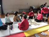 体育館のフロアーでは,女性会の方の「むかしあそび」や交通安全推進委員会コーナー...