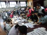縦割り清掃六日目の様子です。 協力して,素早く作業を進めています。