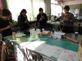 ボンドで組み立てた後は,ミサンガづくりです。手先の器用さが試されますね。