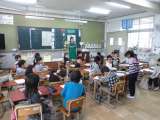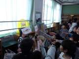 中間休みの様子です。 図書室では,学校司書の先生に読み聞かせをしていただき,その...