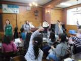 アサガオのツルを使って,リース作りを行います。 完成が楽しみです。
