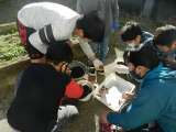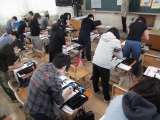 理科室での実験をしています。実験の仕方をよく聞いて、実験を行いました。結果や考察...