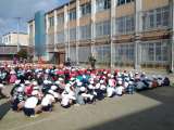 今日は,持久走大会です。グラウンドに整列しています。今から淀競馬場へ向かいます。...