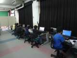コンピュータ室で,安全調べをしています。 自分たちで決めたテーマについて,がんば...