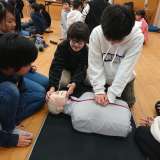 伏見消防署から救急隊の方々に来ていただきお話を聞きました。 胸骨圧迫の方法やAE...