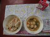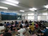 今日の社会はみんなで話し合いました。各班付箋をつかって考えを出し合いグルーピング...