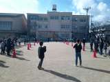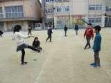 2月8日(木)の中間休み、運動場で6年生がキャッチボールの見本を見せてくれました...