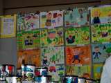 1年間の力作を体育館に展示し,友だちの作品の良いところを見つけ合っています。参観...