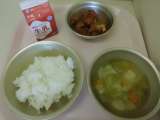今日の給食は,子どもたちに大人気のチキンカレーでした。もちろん1年生の子どもた...